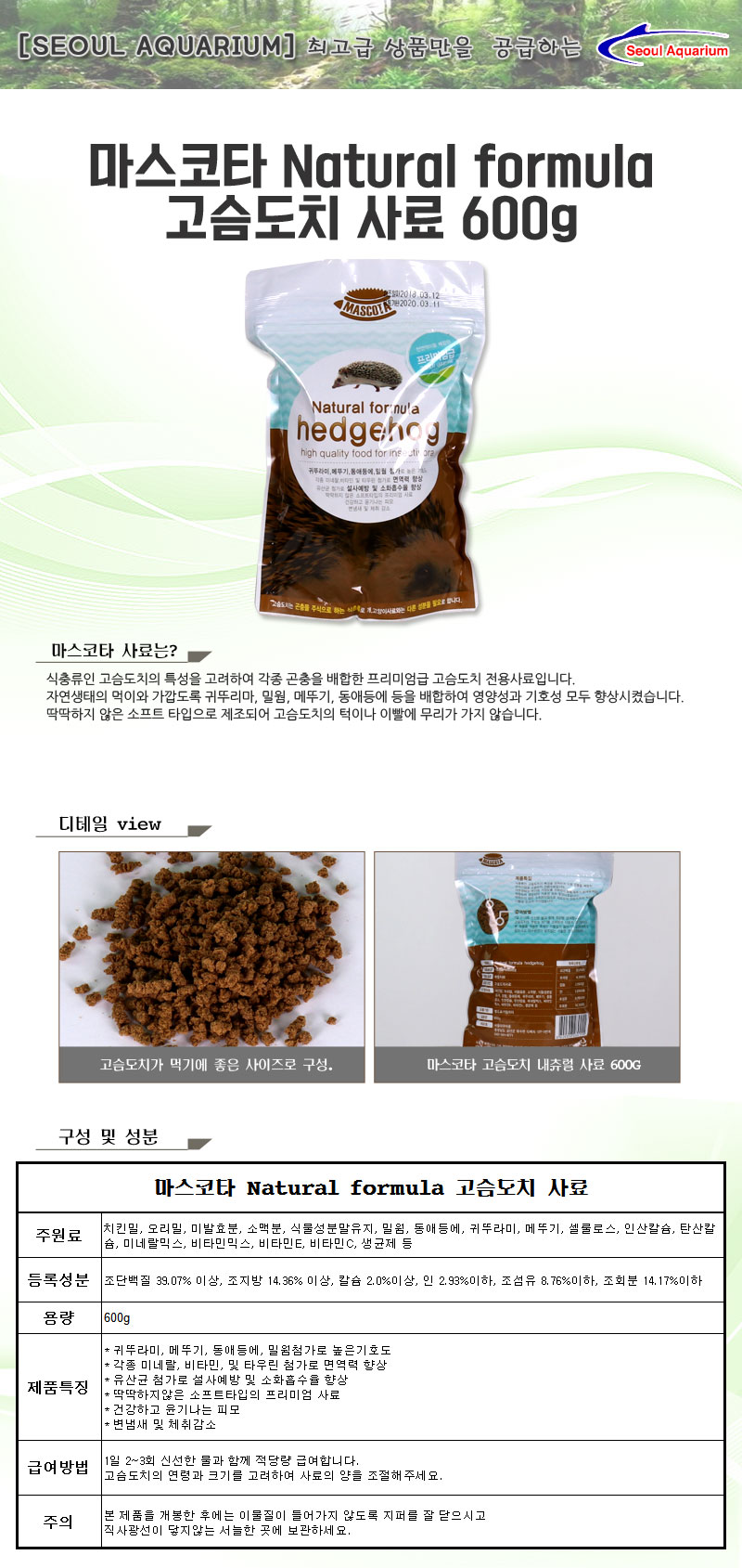 • 네츄럴 포뮬라 고슴도치 사료 600g