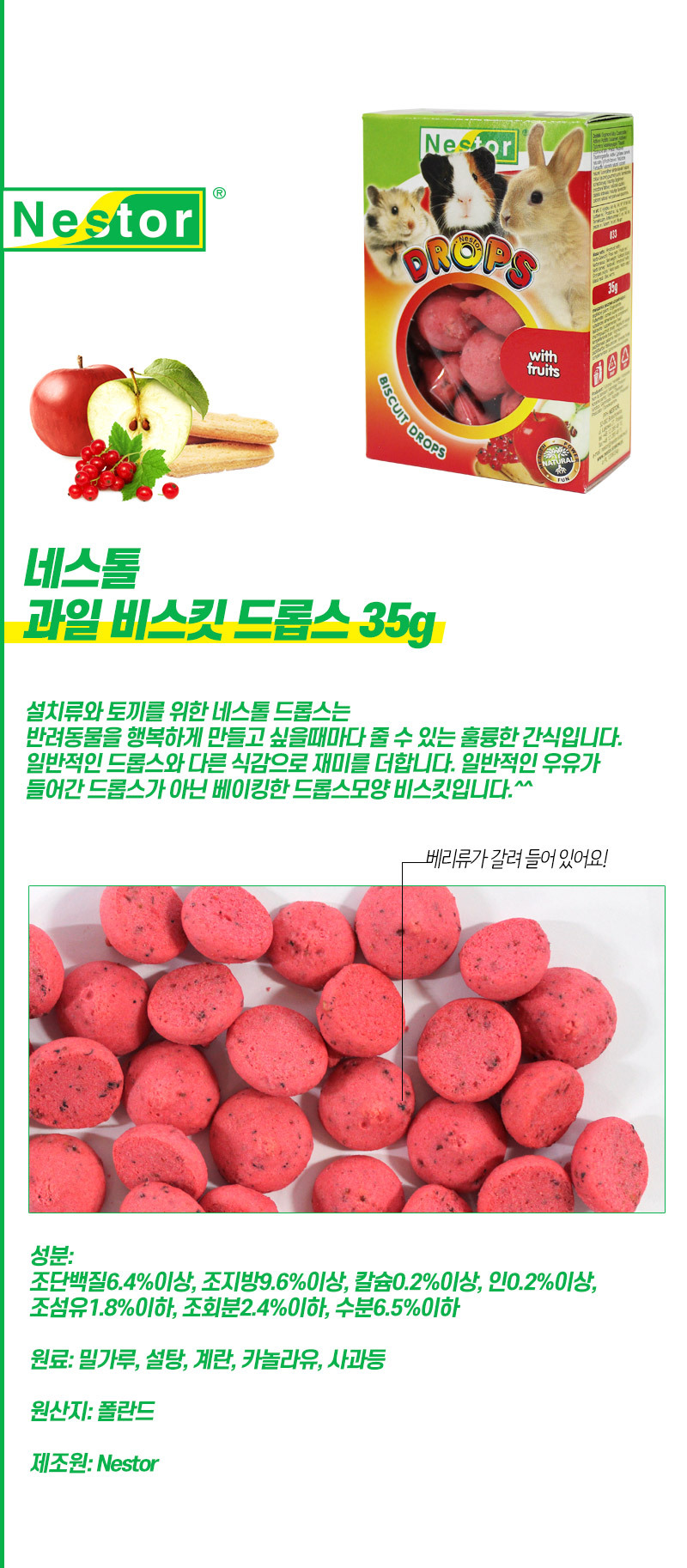 [네스톨] 과일 비스킷 드롭스 35g